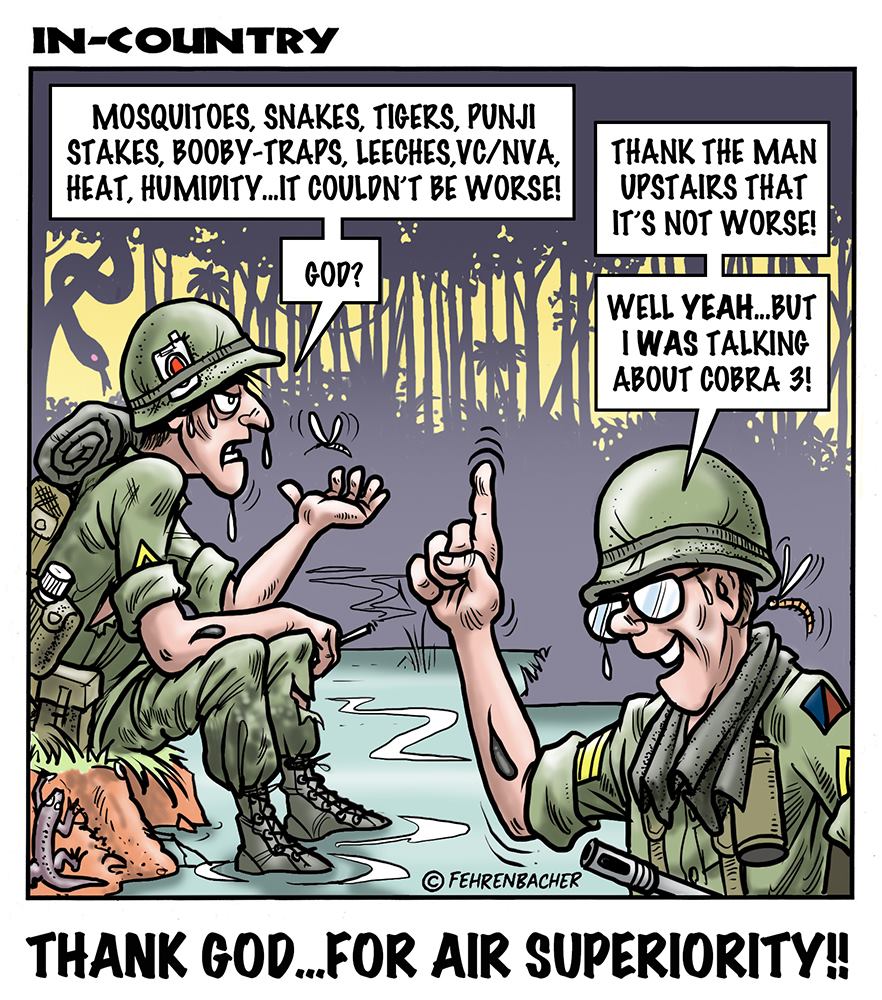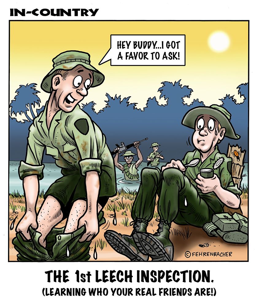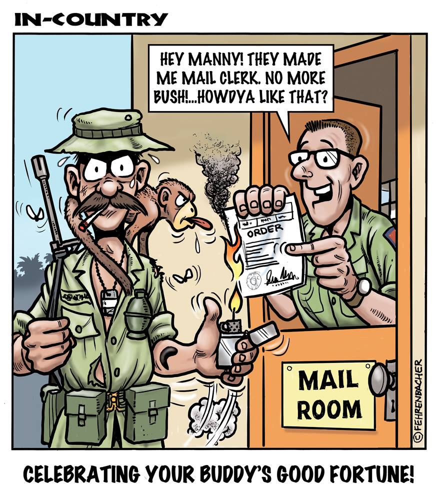 Phil enlisted in the Army in 1965 where you served for years in Vietnam. He became a graphic designer and has worked for the state of Oregon for 26 years. He retired in 2003 and started the Cartoon "In-Country". The cartoons reflect his experiences during his tour of duty in South Vietnam.