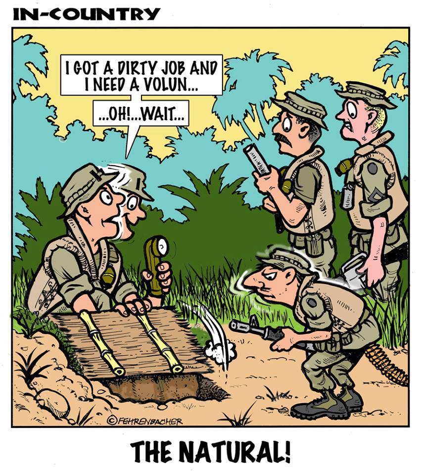 Phil enlisted in the Army in 1965 where you served for years in Vietnam. He became a graphic designer and has worked for the state of Oregon for 26 years. He retired in 2003 and started the Cartoon "In-Country". The cartoons reflect his experiences during his tour of duty in South Vietnam.
